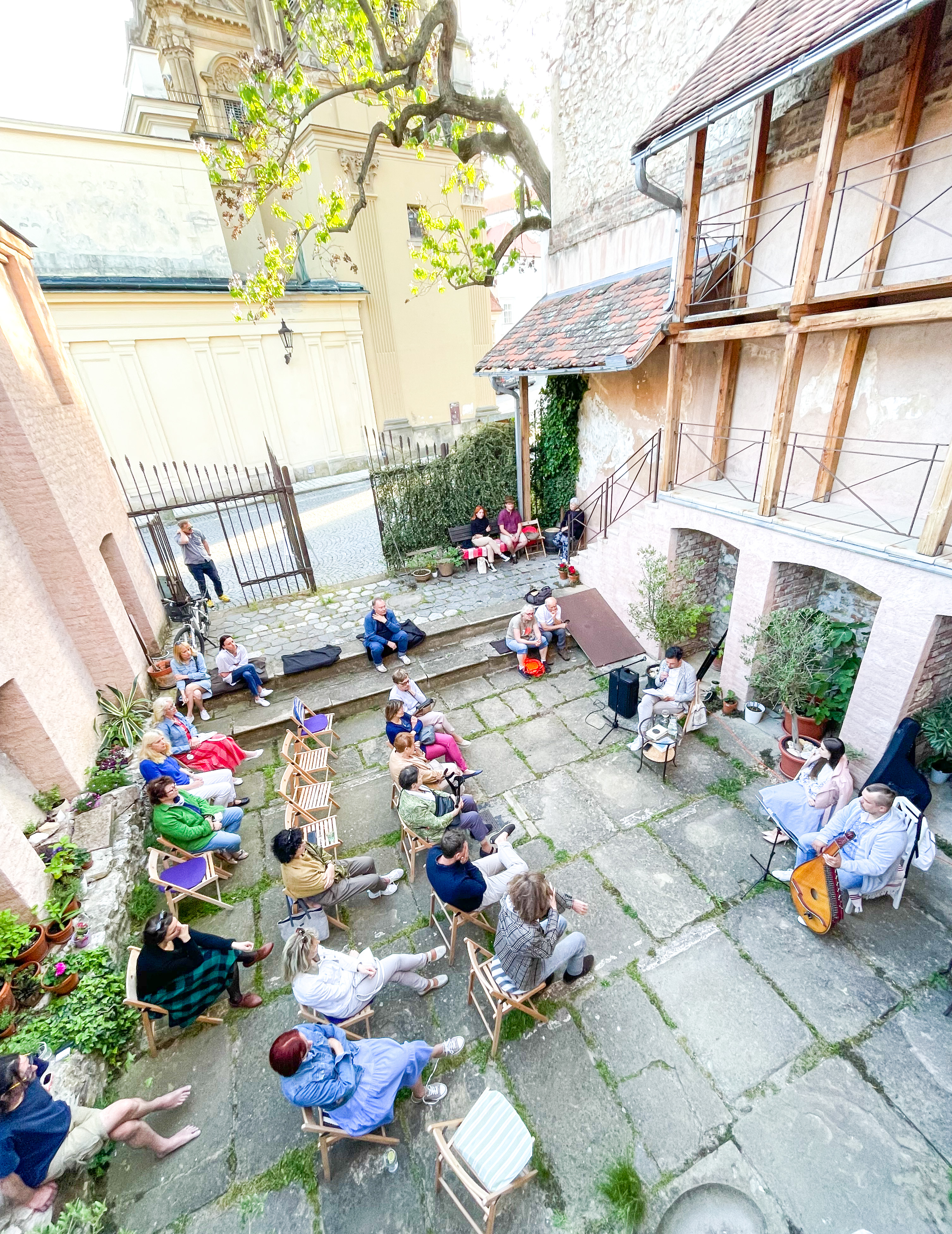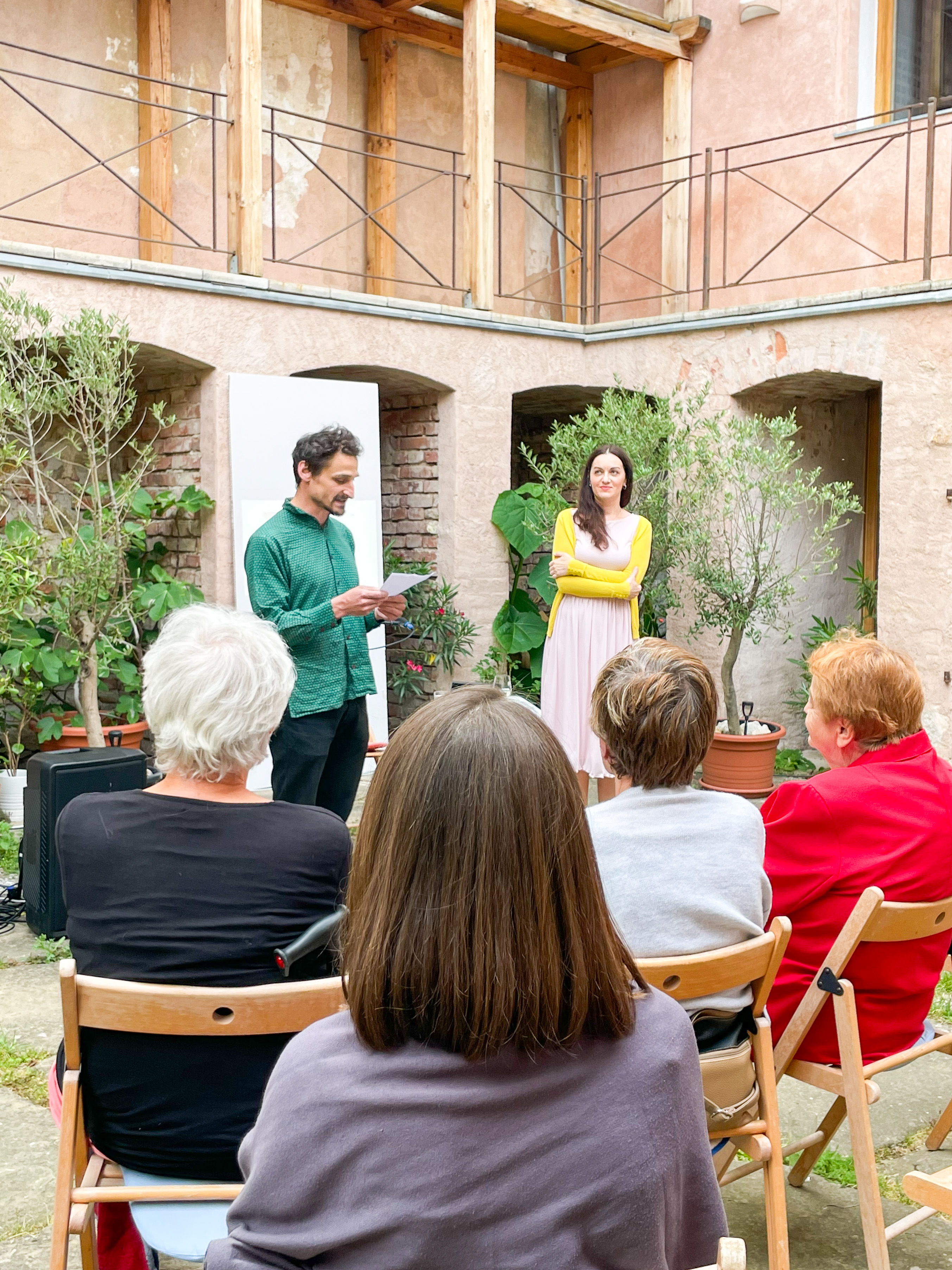 - Pořádáme literární rezidence. Přední současní spisovatelé v Mikulově tvoří, kontemplují, nabírají síly, potkávají se s městem a jeho obyvateli, besedují na gymnáziu, představují svoji tvorbu veřejnosti a píší texty inspirované pobytem.
