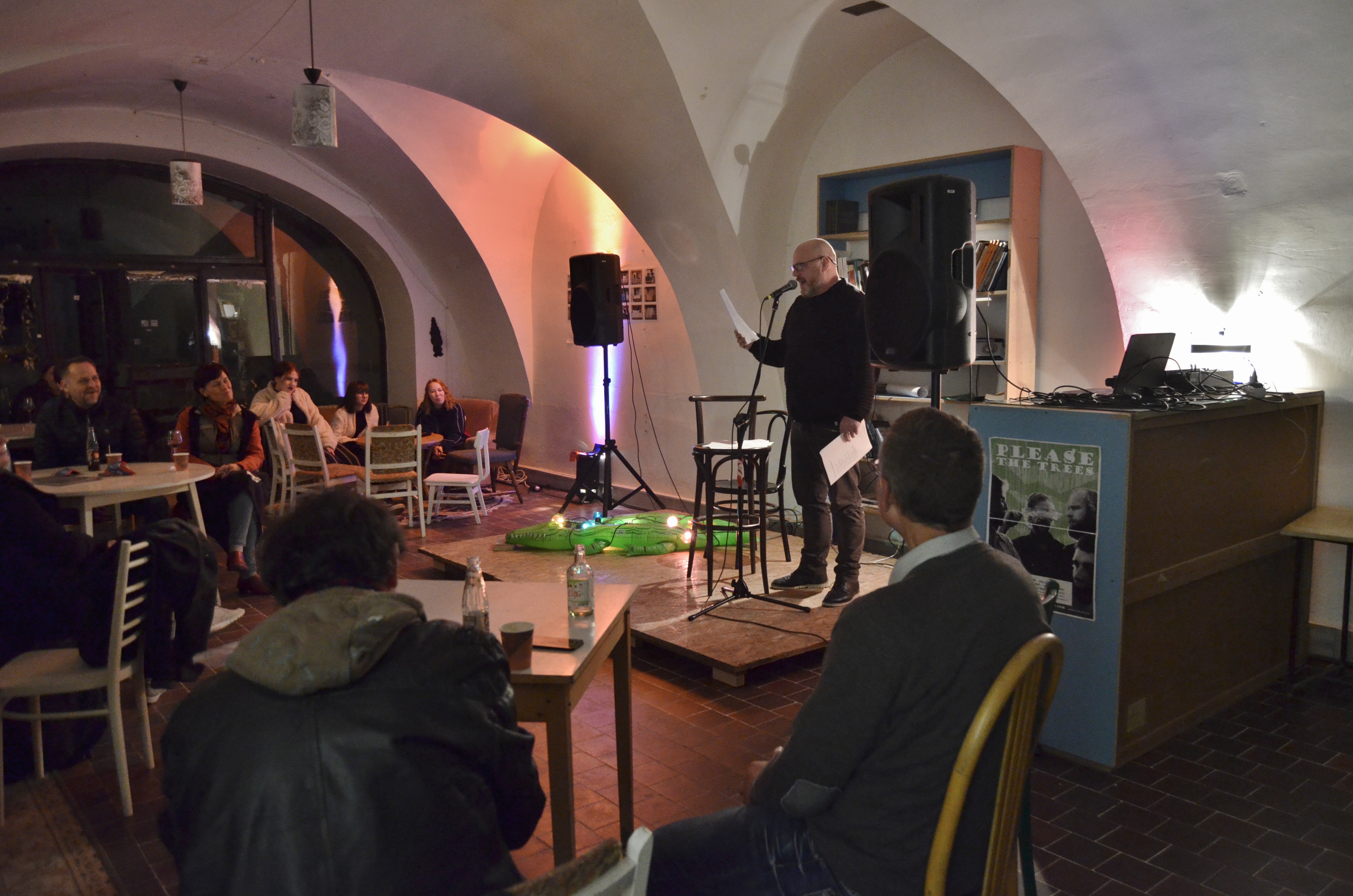 - Pořádáme autorská čtení, komponované večery, klání ve Slam poetry, happeningy, besedy, přednášky o literatuře…